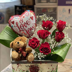 Price: $109.99Dozen Rose Teddy Bear Arrangement